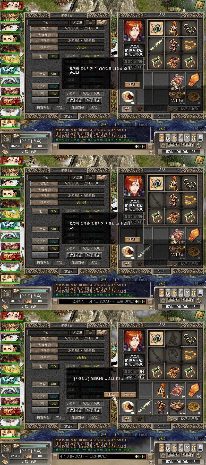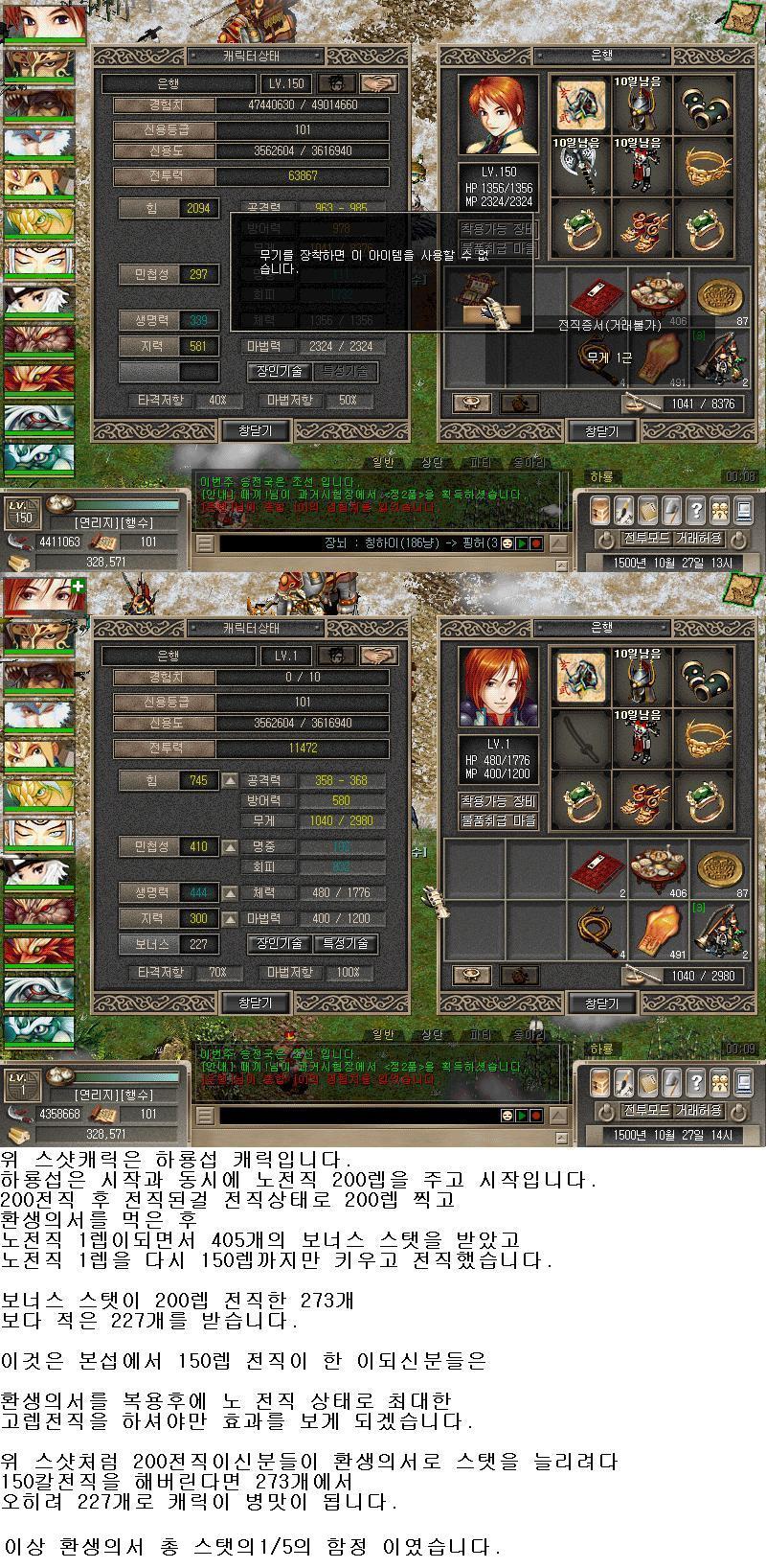 150렙 칼전직후 200렙이상이시라면 환생의서 복용 후