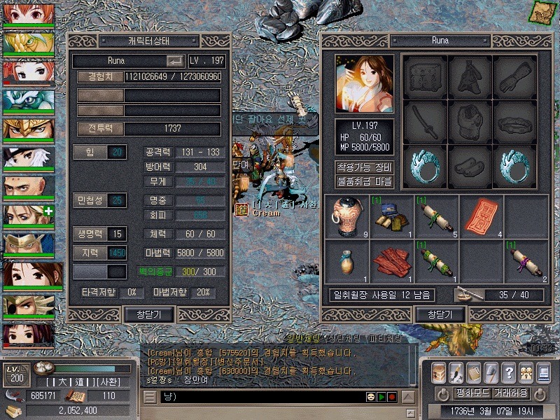 사냥 끝나고 나서의 염력사입니다.