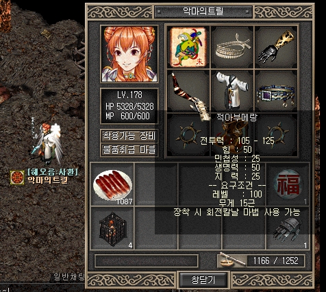 실험에 사용된 케릭터의 아이템 및 착용모습