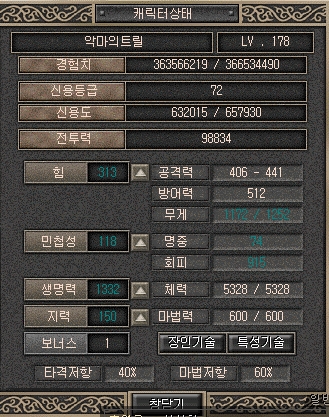 위의 스텟과 특성으로