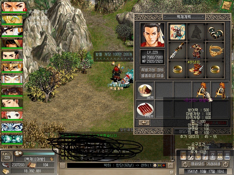 (밑에 스샷은 대만에서담덕을 띄우고 조선으로 이동해서 띄운 다물들입니다 )