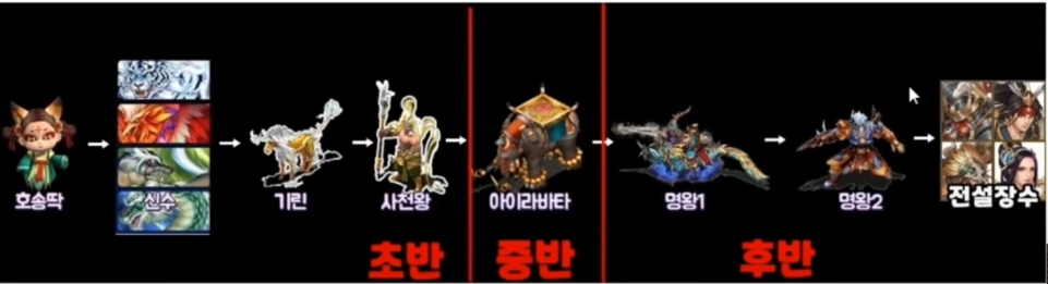 - 풀공명셋 → 진형진법 → 무기 → 팔찌 → 광목천왕부 → 풍백의각반