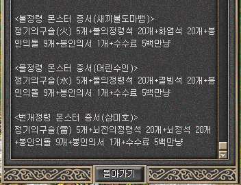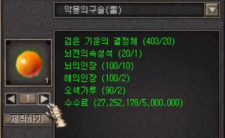'검은기운의결정체', '뇌전의속성석', '뇌의인장', '해의인장', '오색가루'