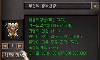* 2020.09.23 패치 적용 (무신의.... 아이템 2가지가 추가되었습니다.)