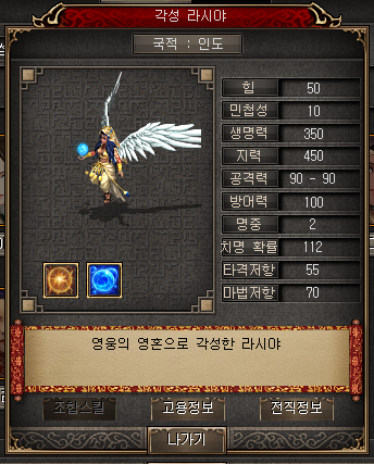 - 각성 시 2차 장수가 가지고 있는 총스탯/5 의 값을 보너스로 받으며 모든 스탯과 저항력이 변화합니다.