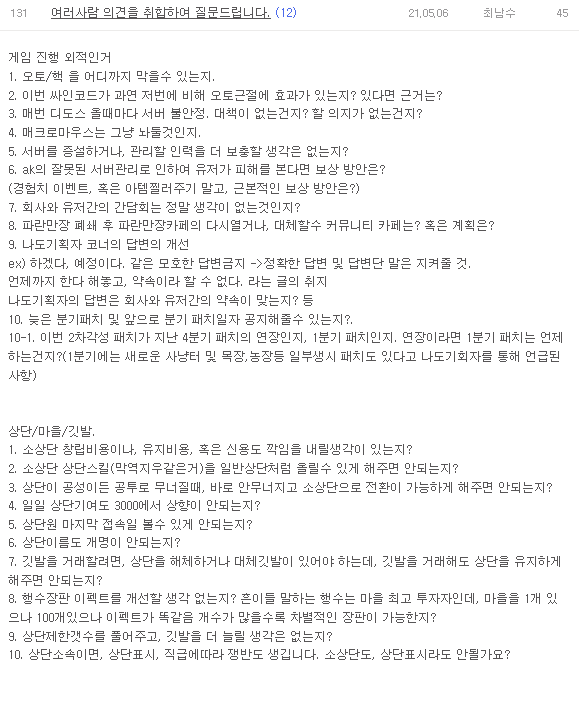 [개발자Q&A] 게임 진행 외적/내적/컨텐츠 등 작성자[단군]:+:sang:+:|작성시간21.04.25|조회수492 목록 댓글 2 글자크기 작게가 글자크기 크게가 다음검색 현재 게시글 추가 기능 열기 북마크 공유하기 신고 센터로 신고 댓글 댓글 2 댓글쓰기 답글쓰기 댓글 리스트 작성자해태상재의정석 | 작성시간 22.07.01 유튜브 은채님계속 매마하라고 홍보하더니만..ㄷㄷ 답댓글 작성자[화랑]백의종군 | 작성시간 22.07.20 누군가가 찔렀는지 매마쓴걸로 1주일 정지 먹었다고 하더라고요 ㅎㅎ 잡긴 잡나봐요 의료기기도 댓글 전체보기
