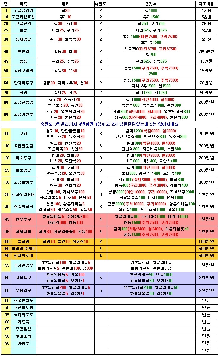 Ps. 30렙이 됐다고해서 동제갑옷을 만들진 마세요..