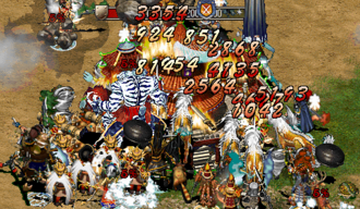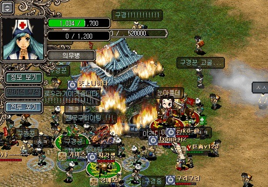 [소개] - 거상 온라인 전반부와 현재 적용되는 방식. - 주인공 캐릭이 직접 마을을 타격하는 방식. [데미지] - 마을은 가마솥,돌을 던져서 적군에게 타격을 줌. - 마을의 체력이나 주인공들의 체력이 서로 깍임. - 마을은 행수가 마을 내부에서 마을체력회복. - 무기의 특성에 따라 단·장거리 타격. - 무기의 특성에 따라 공격스킬이 다름.(공격/치유) - 전투력에 비례한 공격력. - 전투력은 물약을 통해 회복가능 (다과상.등) |