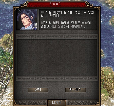 - Lv.100이상의 환수, 신수를 석상으로 봉인