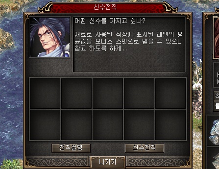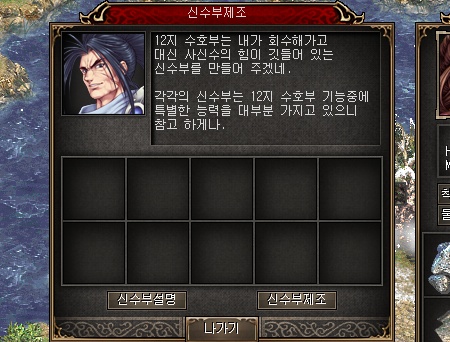 : 소유한 각종 환수 및 신수석상과 부수 재료를 혼합하여 원하는 신수를 제작 할 수 있다.