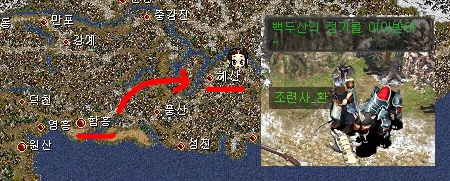 ① 한양(포탈) → 함흥 → 혜산 → 도보.
