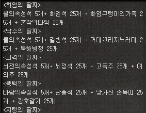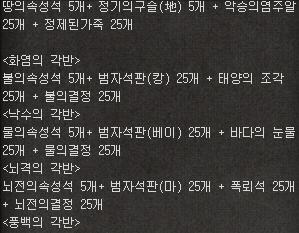 : 속성의가루 2개 + 작은ㅁㅁ의속성석 2개 + 수수료 200만냥
