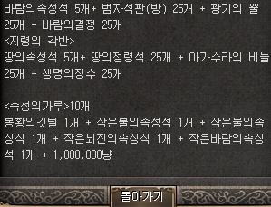 : 속성의가루 1개 + 작은ㅁㅁ의속성석 1개 + 수수료 100만냥