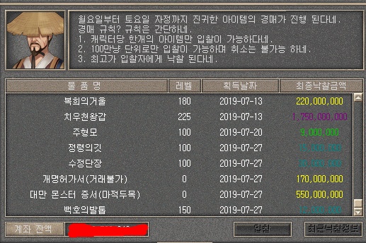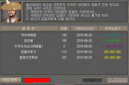 - 경매장에서 매주 5가지의 아이템이 경매 진행된다.