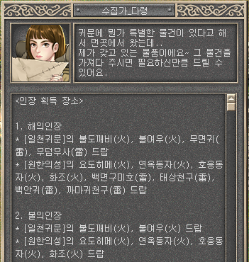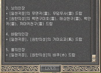 : 불의인장 100개 , 뇌의인장 100개 , 물의인장 100개 , 바람의인장 100개