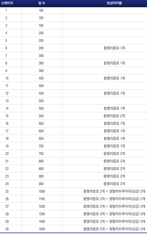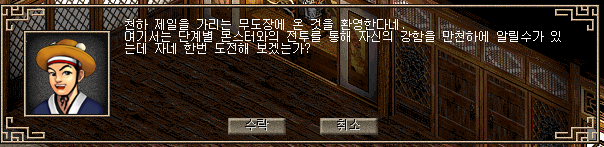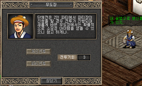 사냥터 - 무도장 - 무도장 전투 작성시간19.10.27|조회수3,125 목록 댓글 0 글자크기 작게가 글자크기 크게가 무도장P.K. 전투무도장 전투도전 모드위치: 조선 천안마을 우측.[무도장 전투 진행]① 'NPC_홍글동'을 통해서 무도장 전투 시작② 개인전/단체전이 있으며 하루 총 3번 도전가능. (단체전: 최대 2명 플레이어)③ 전투를 통해 용맹의증표 등을 획득할 수 있음.④ 무도장 순위/점수는 '공고'를 통해 확인 가능.[무도장 보상 아이템]- 단계별 보상아이템은 아래와 같다.① 개인전② 개인전 다음검색 현재 게시글 추가 기능 열기 북마크 신고 센터로 신고 댓글 댓글 0 댓글쓰기 답글쓰기 댓글 리스트
