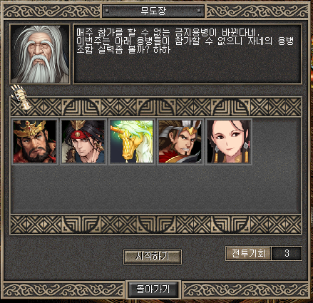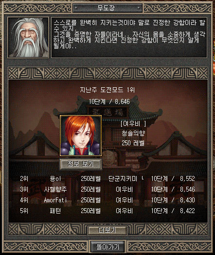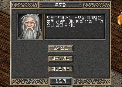 ① NPC '은둔고수_대선' 통해 무도장 도전모드를 진행.