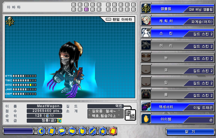 길드스킨과 전용작스킨 작성자MeatWagon|작성시간11.02.13|조회수325 목록 댓글 3 글자크기 작게가 글자크기 크게가 전용스킨 길드스킨3 길드스킨2 1은 길드원돈모아서 다시신청할꺼 이미지 좋은거 있으면 추천좀해주세요 남자 악마에 눈에 붕대로 두건감은걸로 할까생각중인데 이건 창작으로해도되니 틀만 찾으면되긴하는데 ㅠㅠ 다음검색 현재 게시글 추가 기능 열기 북마크 공유하기 신고 센터로 신고 댓글 댓글 3 댓글쓰기 답글쓰기 댓글 리스트 작성자Rosette | 작성시간 11.02.13 첫번째스킨 문희준 작성자미디어 | 작성시간 11.02.14 길스2퀄이 떨어진다 작성자akiha | 작성시간 11.02.14 제왕님거 멋있네요 ㅋ 댓글 전체보기