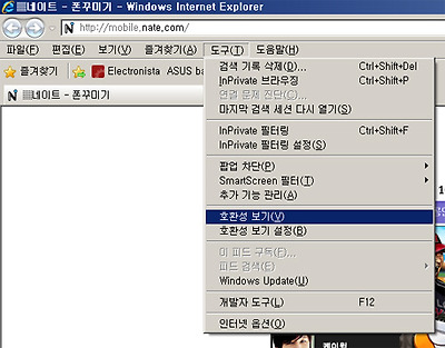 IE8에는 이같은 문제를 신속하게 해결할 수 있도록 ‘호환성 보기’ 기능을 새롭게 추가했다. 이 기능을 사용하기 위해서는 먼저 호환성 문제가 발생하는 웹 사이트에 진입한 뒤, 키보드의 F10 버튼 또는 ALT + T 키를 눌러 '도구(T)' 메뉴를 불러와야 한다.