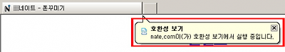 그 뿐만이 아니다. 호환성 보기의 실행 여부를 확인할 수 있도록, 익스플로어 탭 상단에는 구름 모양의 대화상자가 나타나기 때문에 웹 페이지가 호환성 모드로 동작 중인지 아닌지를 육안으로 쉽게 알아볼 수 있도록 했다.