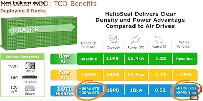 ▲ 기존 HDD보다 헬륨 HDD는 공간 효율, 전력 소비 등 장점이 많다