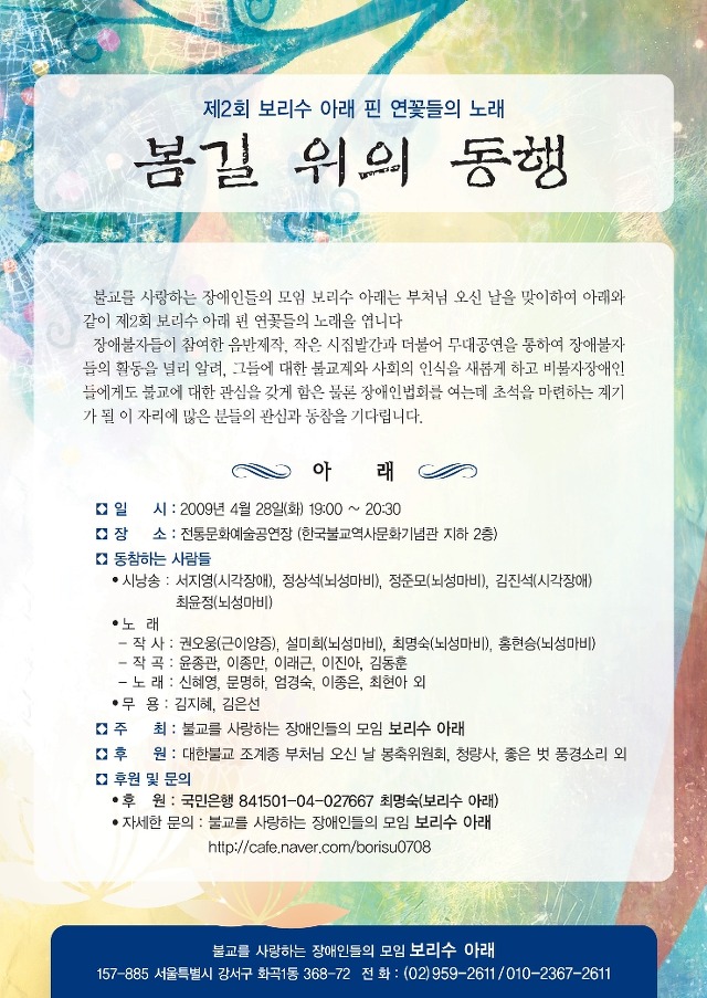 봄길위의 동행에 함게 해주세요 작성자바람곁의 풍경|작성시간09.04.15|조회수28 목록 댓글 2 글자크기 작게가 글자크기 크게가 다음검색 현재 게시글 추가 기능 열기 북마크 공유하기 신고 센터로 신고 댓글 댓글 2 댓글쓰기 답글쓰기 댓글 리스트 작성자금춘햇살 | 작성시간 09.04.15 "봄길 위의 동행" 제목이 참 좋군요. 금춘가족과 저에게는 참 뜻깊은 날일 것 같은데 함께 동행할 금춘가족들이 몇명이나 있을지? 미리부터 물색해 봐야겠습니다. 좀 여럿이 갈 수 있었으면 좋겠습니다. 작성자바람곁의 풍경 작성자 본인 여부 작성자 | 작성시간 09.04.15 네!! 저도 그러면 반가울것 같네요 댓글 전체보기