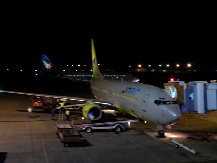버스는 네 시간에 걸쳐 인천공항에 도착하였다. 짐을 부치고 입국 수속을 끝낸 후 오후 7시 50분경에 진에어(Jin Air) 015편이 출발하였다. 좌우에 세 개씩 좌석이 있는 작은 비행기인데 엔진 소리가 매우 커서 모두들 힘들어 했다. 좌석의 앞뒤 간격이 좁은데다 기내식도 너무 빈약했다. 저가항공을 경험하는 좋은 기회라고 생각하기로 했다. 진에어에도 좋은 점이 있다. 스튜어디스들이 예쁘고 친절하다. 그들은 치마가 아닌 청바지를 입는데 모두가 늘씬한 몸매에 귀여운 얼굴들이었다. 이 사람들이 말로만 듣던 베이글여(얼굴은 베이비, 몸매는 글래머)가 아닌가 생각했다. 그리고 자리가 중간 중간에 비어서 살며시 누울 수 있는 것도 큰 장점이었다.