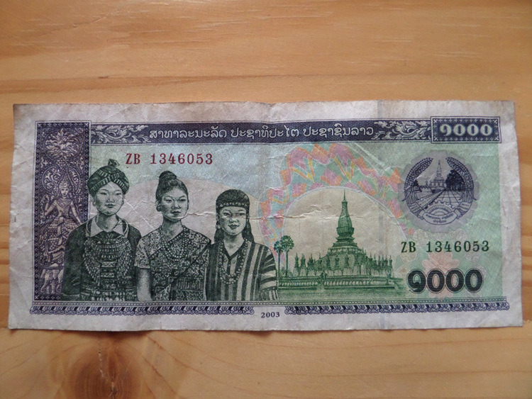 라오스의 화폐 단위는 킵인데 1달러(우리 돈 1,070원 정도)가 7,000킵이다 .
