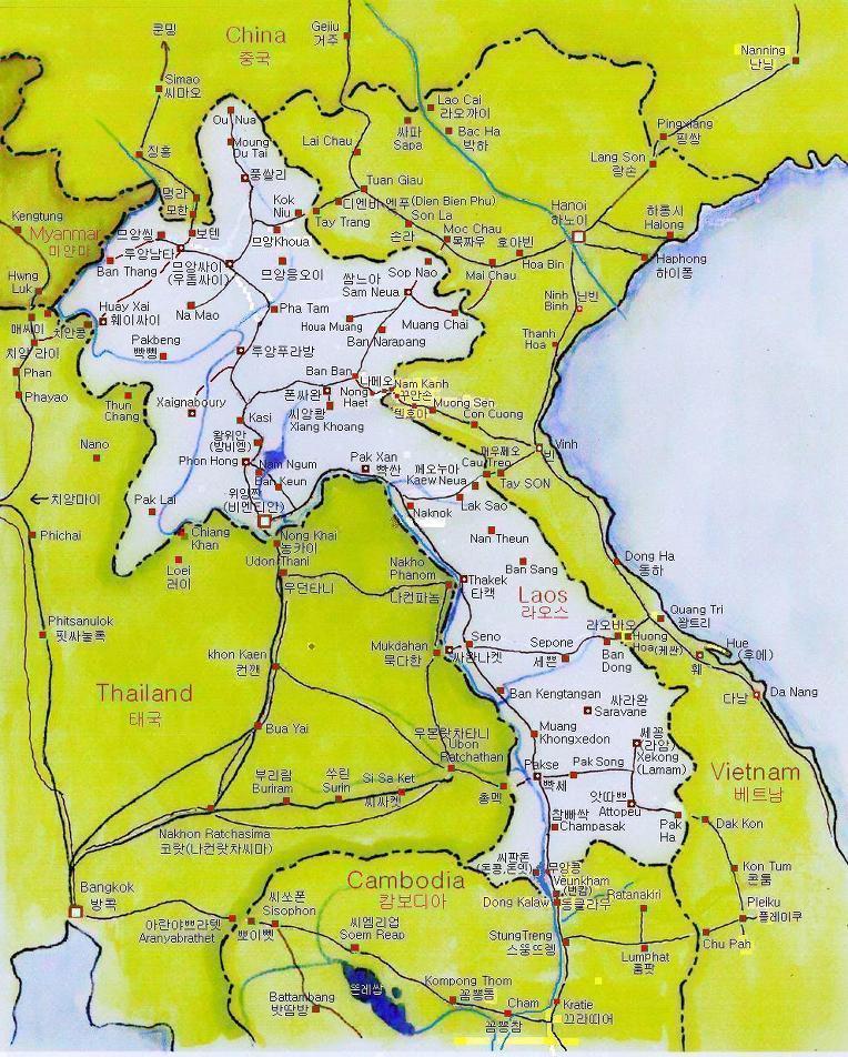 이번 여행지는 라오스다. 아는 선생님 몇 분들과 함께 가자고 약속했던 곳인데 지금까지 가지 못했다. 라오스는 우리나라보다 땅이 넓다. 남북한을 포함하면 22만㎢인데 라오스는 23.7㎢이니 한반도보다 조금 크고 남한의 2.4배 정도 된다. 인구는 667만명 (2008년 현재)이라고 한다. 수도는 비엔티엔(Vientiane)이며 68개의 종족이 섞여 살고 있다. 그래서 소수 민족의 용광로라고 한다. 이렇게 많은 소수민족을 사는 해발고도에 따라 세 개로 나눈다. 500m 이하에 사는 라오룸족(68%), 500m ~ 1,000m의 라오퉁족(22%), 1,000m 이상에 사는 소수 민족은 라오숭족(9%)이다.