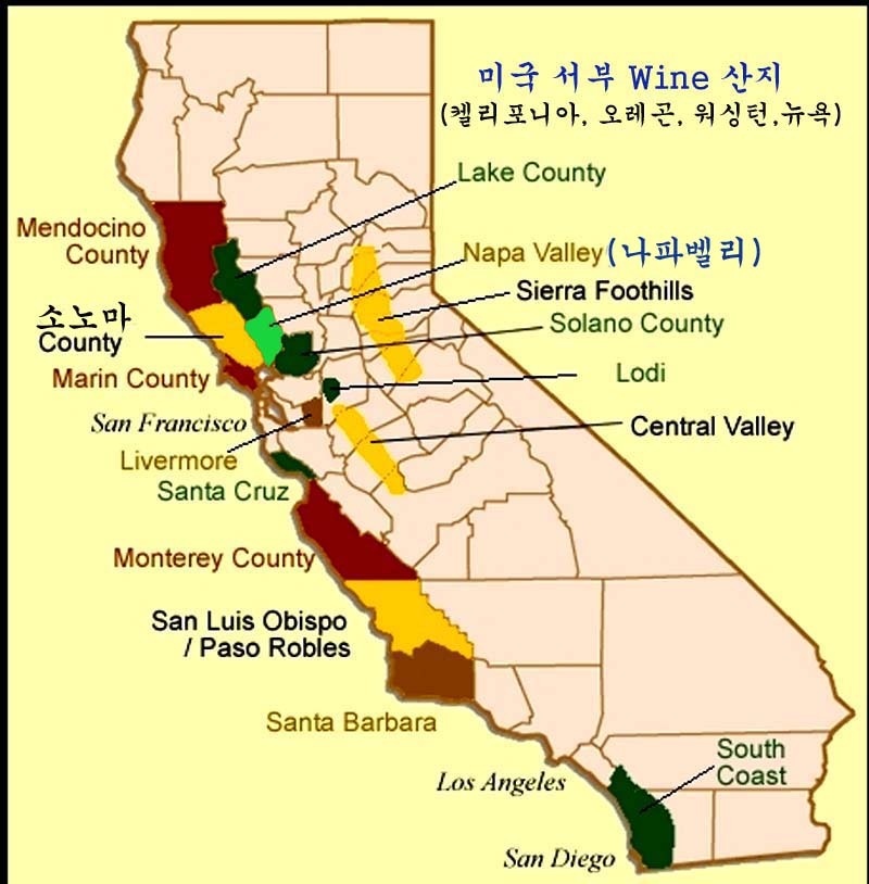 캘리포니아는 남한의 4배나 크며 이상적인 기후조건과 막강한 자본력과 연구노력으로 개발된 최신 양조기법에 힘입어 와인의 신흥 명산지로 급성장 하고 있다.