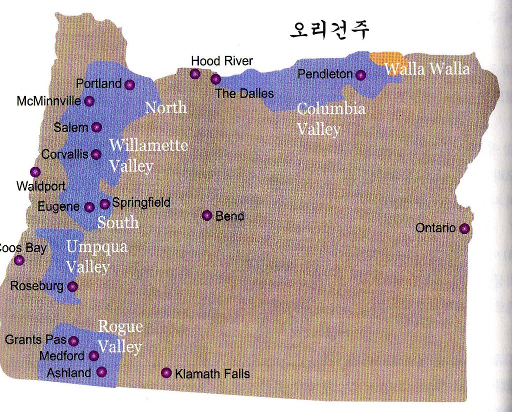 캘리포니아주의 북쪽에 붙어 있는 오리건(Oregon) 주는 와인산업이 캘리포니아에 비해 늦게 시작했지만 Pinot Noir 품종 와인의 눈부신 성공에 힘입어 빠른 성장을 계속하고 있다. 2001년에 174개였던 와이너리가 2006년에 350여 개로 5년 사이에 두 배로 늘어났다. 프랑스 부르고뉴 지방에서 단일 품종으로 레드와인을 만드는 Pinot Noir는 기후나 토양에 대한 선호벽이 아주 까다롭고, 껍질이 얇아 병충해도 약해 어디에서든 재배가 쉽지 않다. 오리건 주는 서늘하고 축축한 기후를 포함해 기본적으로 부르고뉴와 같은 위도 상에 위치한 점도 있어 재배가 잘 되는 편이며 오리건 주에서 생산되는 와인의 절반 이상이 Pinot Noir 품종 와인이다.
