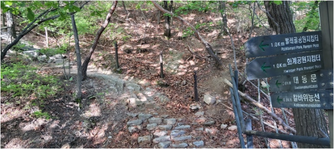 | 산행코스 | [A조] 서경대본관~칼바위지킴터~ 칼바위~대동문~진달래능선~ 백련공원지킴터~4ㆍ19탑 [B조] 둘레길 서경대본관~칼바위지킴터~ 빨래골지킴터~구름전망대~ 화계사지킴터~통일교육원~ 근현대사기념관~ 백련공원지킴터~ 4ㆍ19탑 |