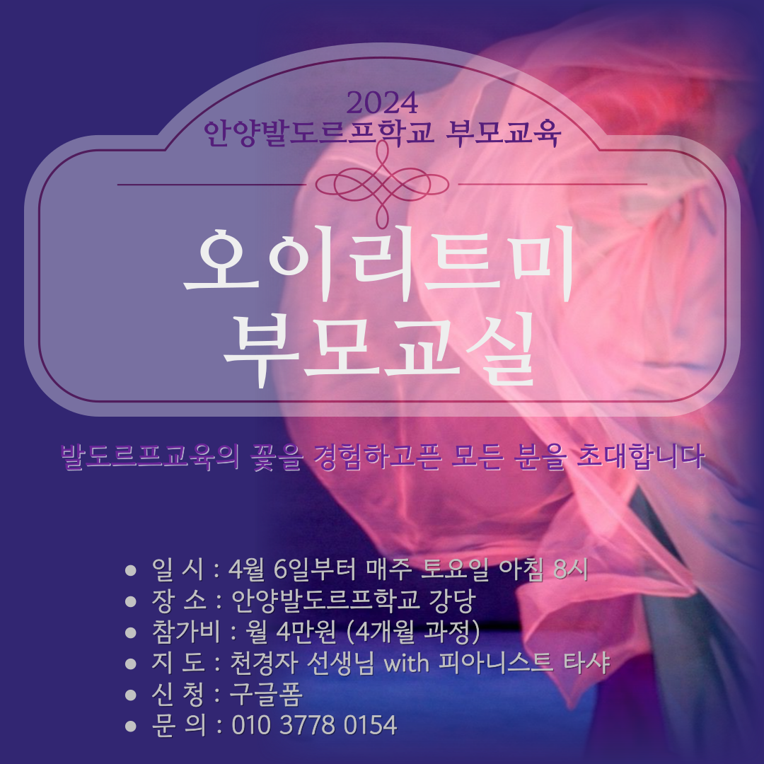 >>현 안양발도르프학교 오이리트미교사 천경자 선생님 ( 피아노: 타샤 선생님)과 함께 합니다.<<