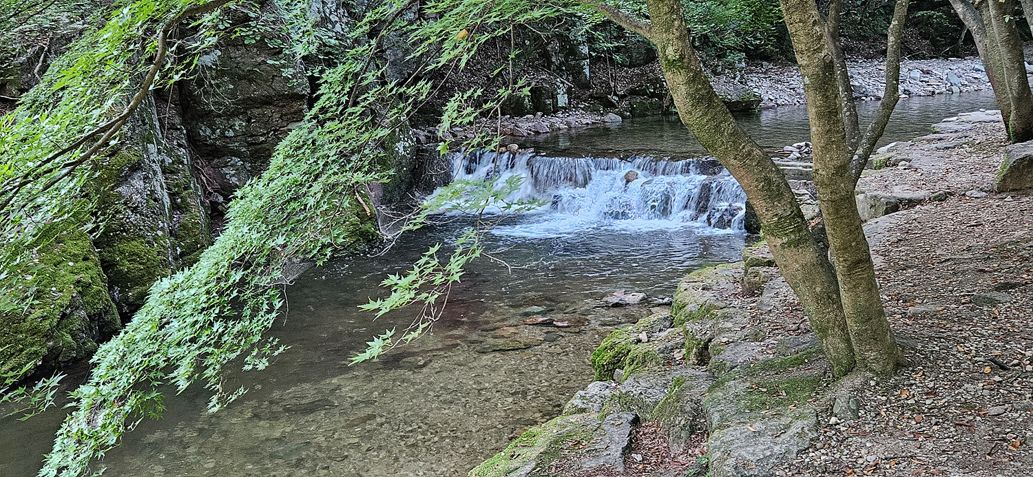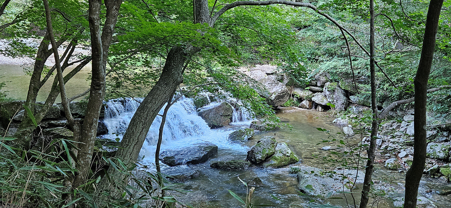 귀를 쫑끗하게 만드는 경쾌한 물소리에 작은 초록의 단풍나무들이 살랑살랑~