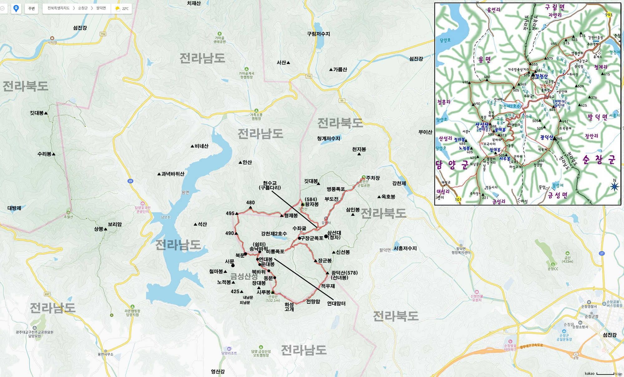 전라남도와 전라북도의 경계를 가르는 능선 순창의 강천산으로 출발~