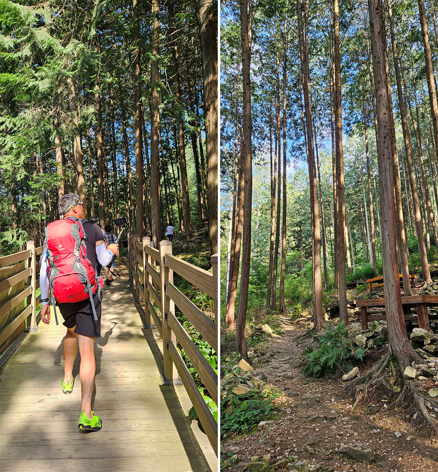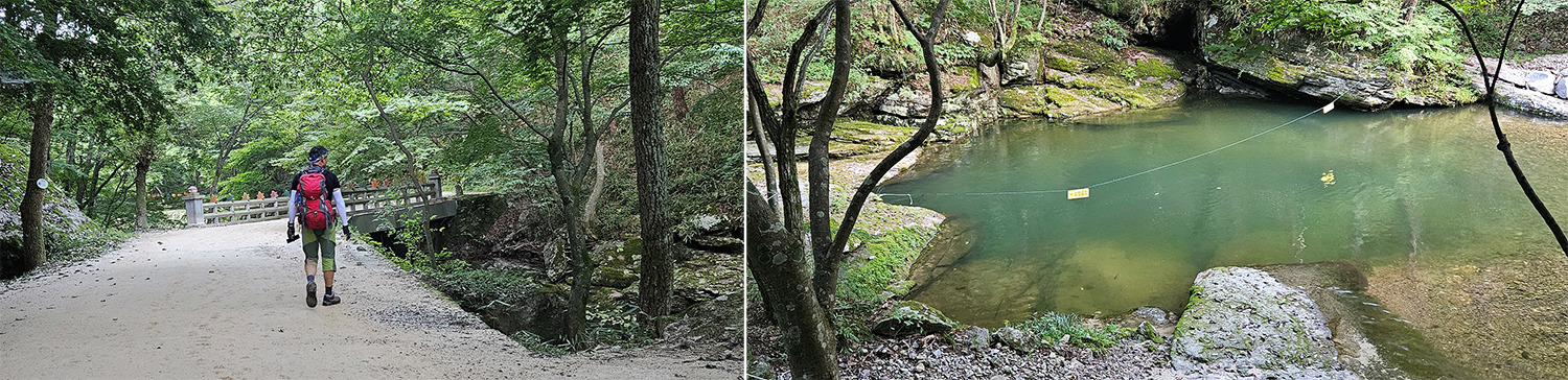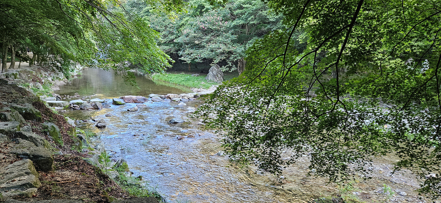 걷는 길이 반질반질~ 우측으로는 산이, 좌측으로는 물줄기가~