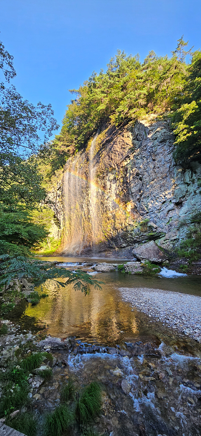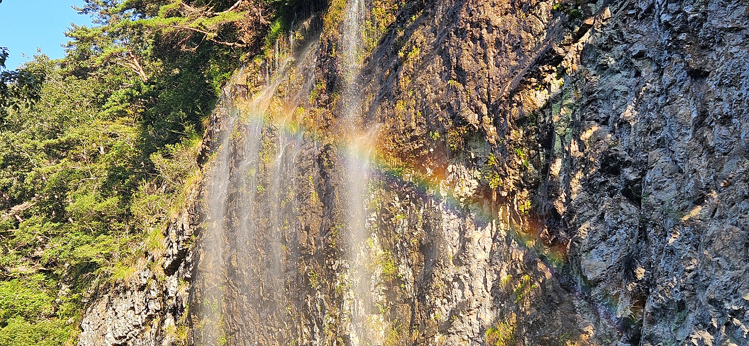 병풍폭포에 걸린 무지개로 발길이 떨어지질 않아서