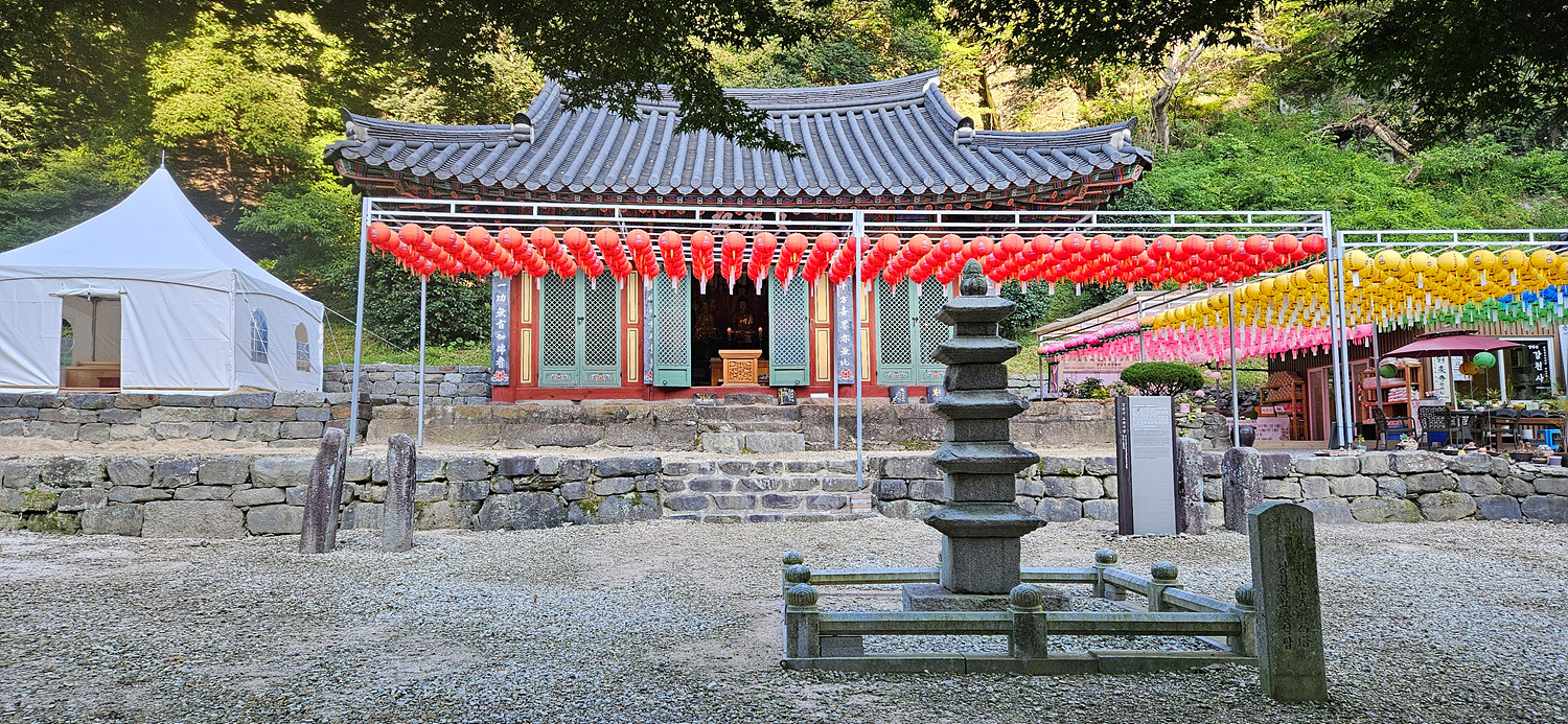 정면 3칸 측면 2칸의 이층 누각이 절 입구에서 반기고.
