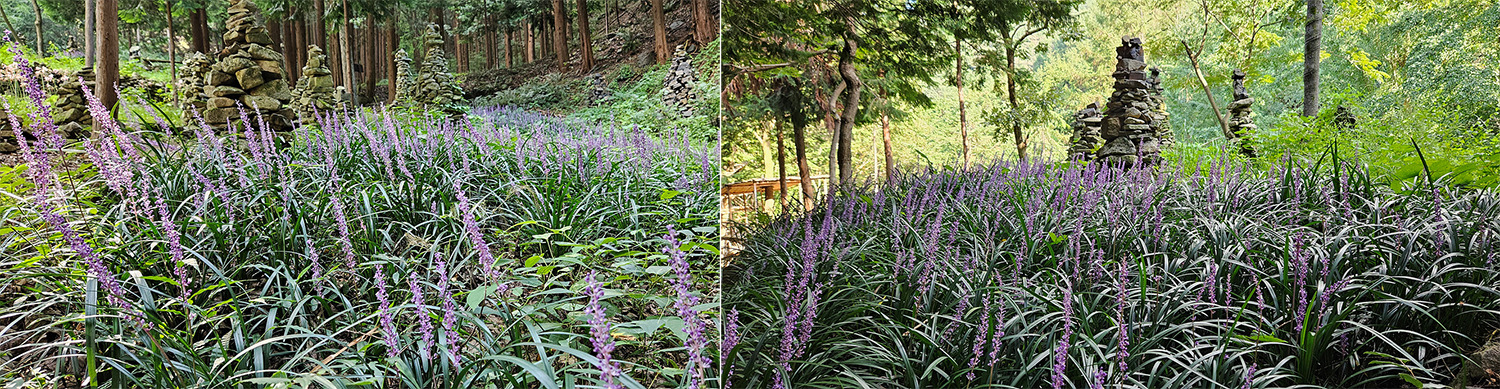 보라보라~ 맥문동(麥門冬) 꽃이 소담스럽게 피어 눈길을 잡아 끌고요.
