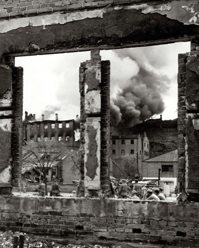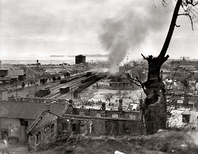 1950년 9월16일 상륙작전 직후 불타고 있는 인천 시가지의 모습. /사진=눈빛출판사 제공 /뉴시스