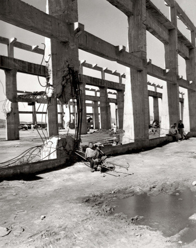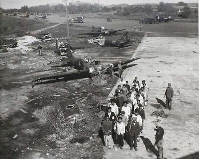 삽 들고 비행장 복구 - 폭격으로 파괴된 비행장 복구에 나선 노무자들이 삽을 들고 상급자로부터 작업지시를 받고 있다(1950년 10월 24일). 멀리 뒤에 보이는 활주로에 미군기가 보인다.장소는 밝혀지지 않았다