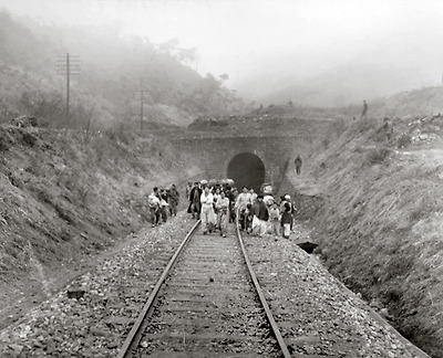 1951년 5월24일 터널을 폭파하려는 영국군의 인솔하에 터널 밖으로 대피중인 피란민들. /사진=눈빛출판사 제공