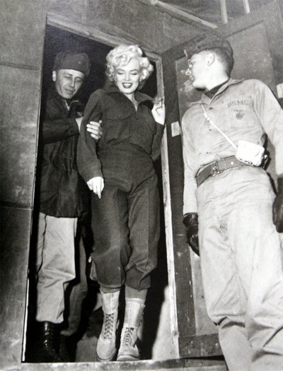 사진은 위,종전 후 전선에 배치된 미군 장병들을 위문하기 위해 내한한 인기 여배우 마릴린 먼로. /연합뉴스