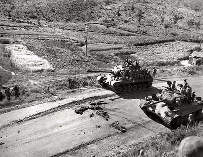 1950년 9월17일 탱크를 가로막은 시신들의 모습. /사진=눈빛출판사 제공 /뉴시스