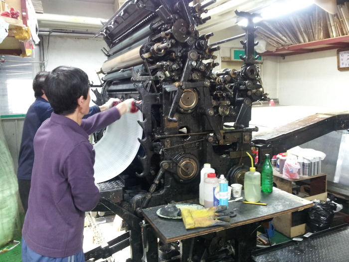 반자동 수동 인쇄기라서 아주 얇은 종이(박엽지)의 인쇄를 할 수 있습니다.