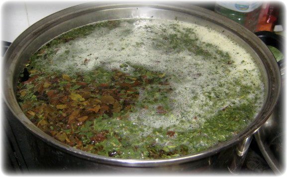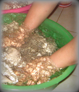 골고루 찻물이 베이도록 손질을 계속합니다 (30분)