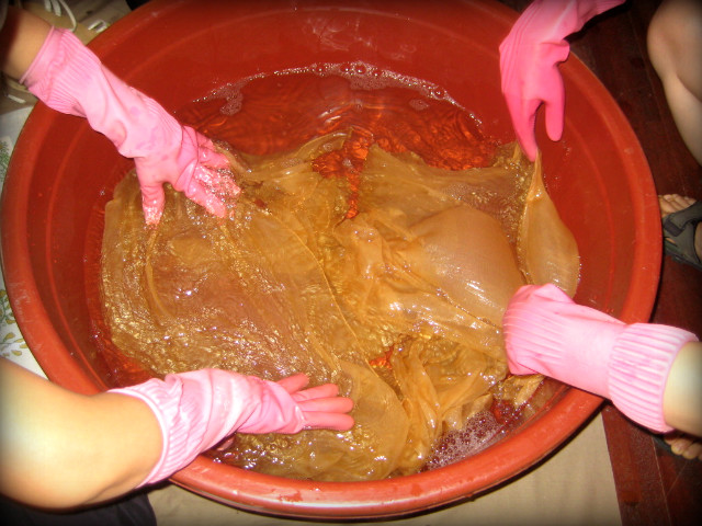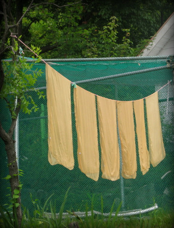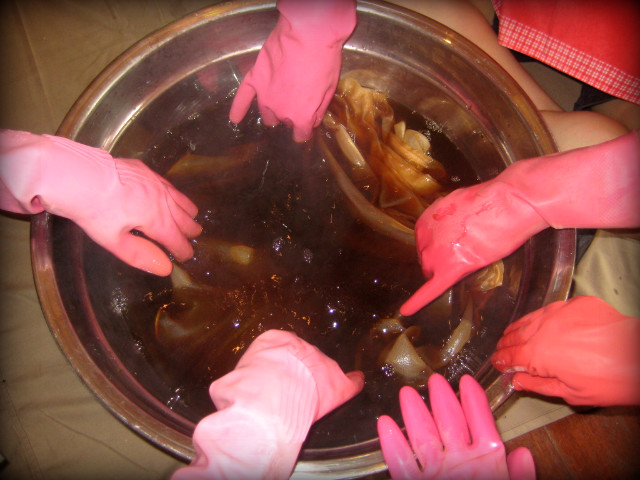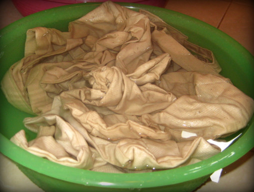 예쁘게 물들일 원단을 물에행굽니다