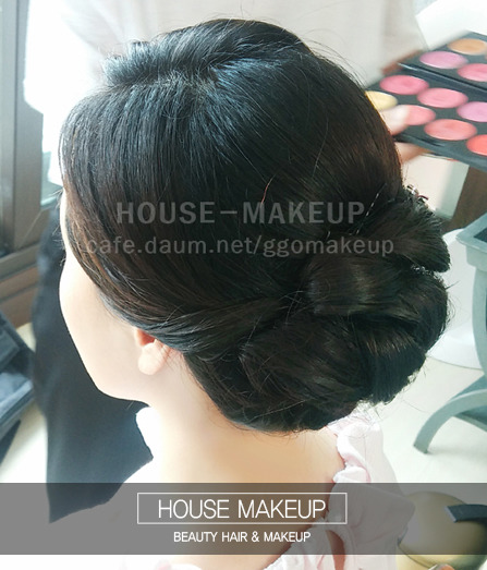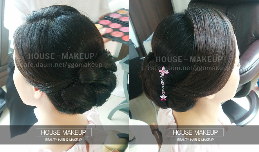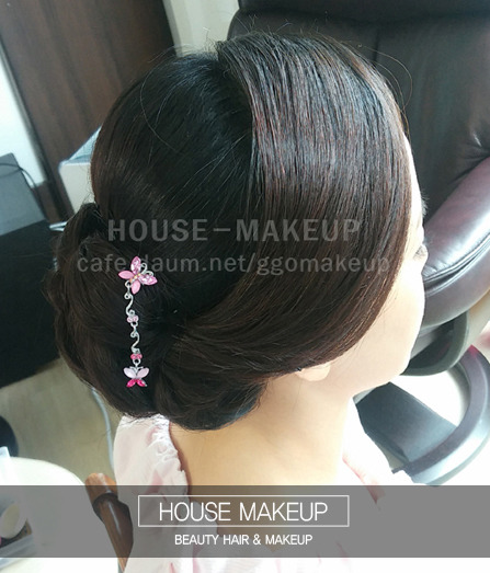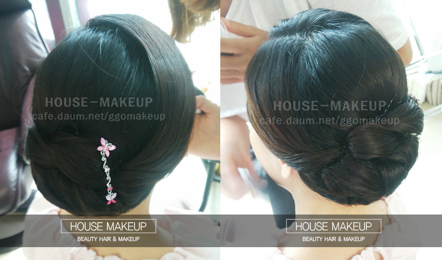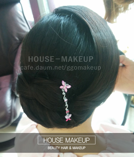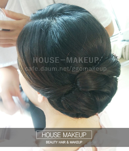 전체적인 잔머리는 제품으로 처리하며 한복올림머리에 원하시는 꺠끗함을 중점적으로 두어