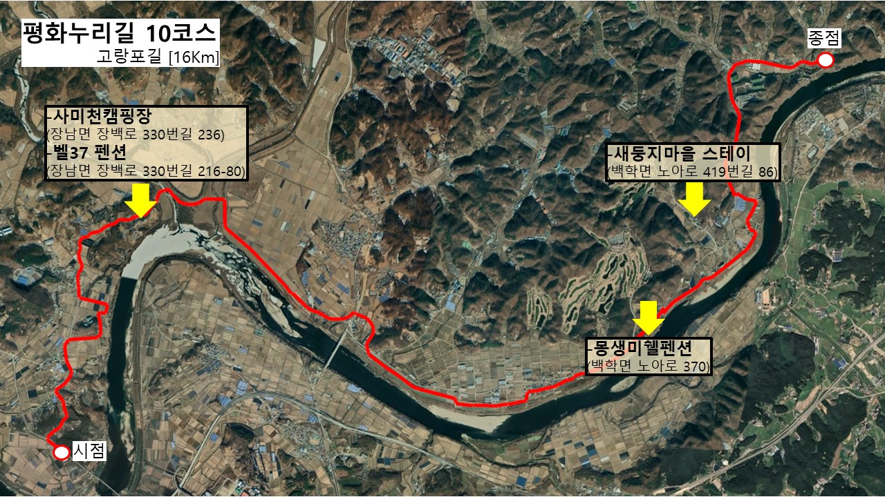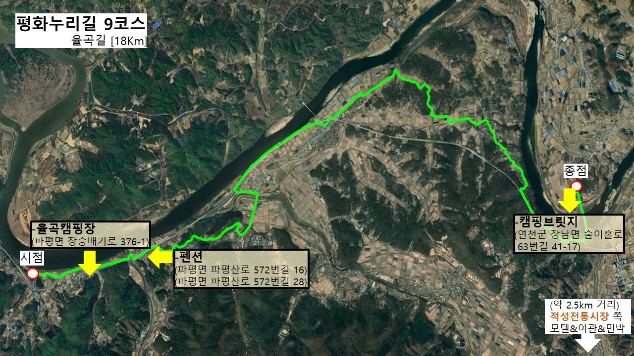 - 9코스 혹은 10코스는 도착지점을 적성 방향으로 잡아서 숙박업소를 찾는 걸 추천드리겠습니다.