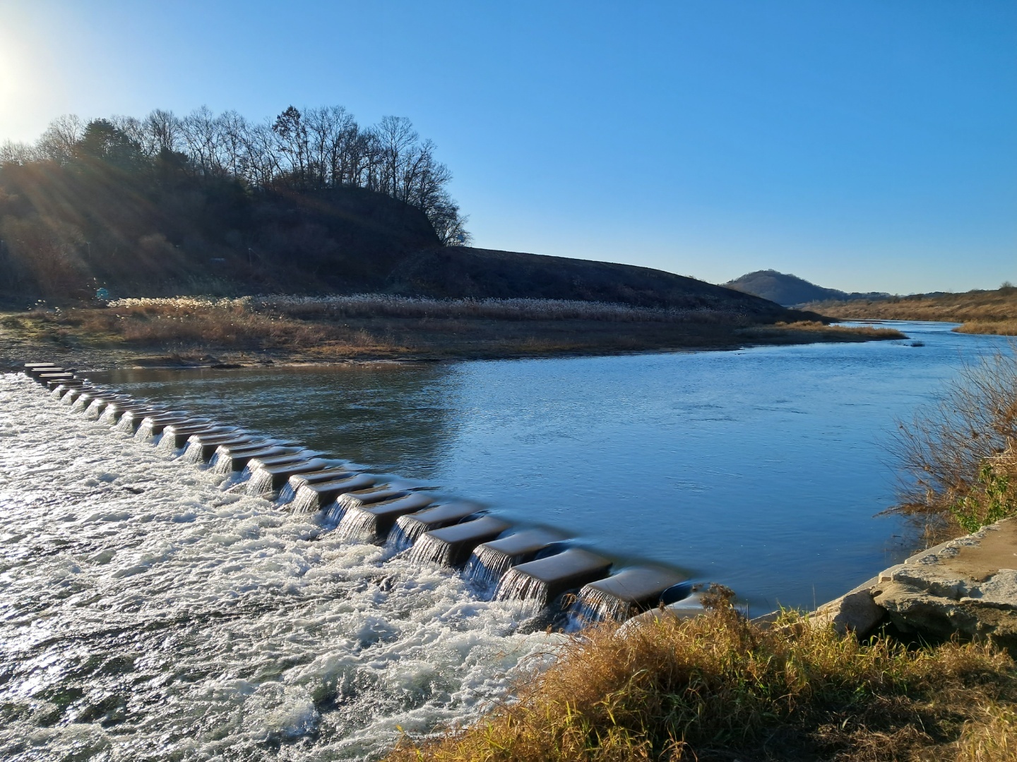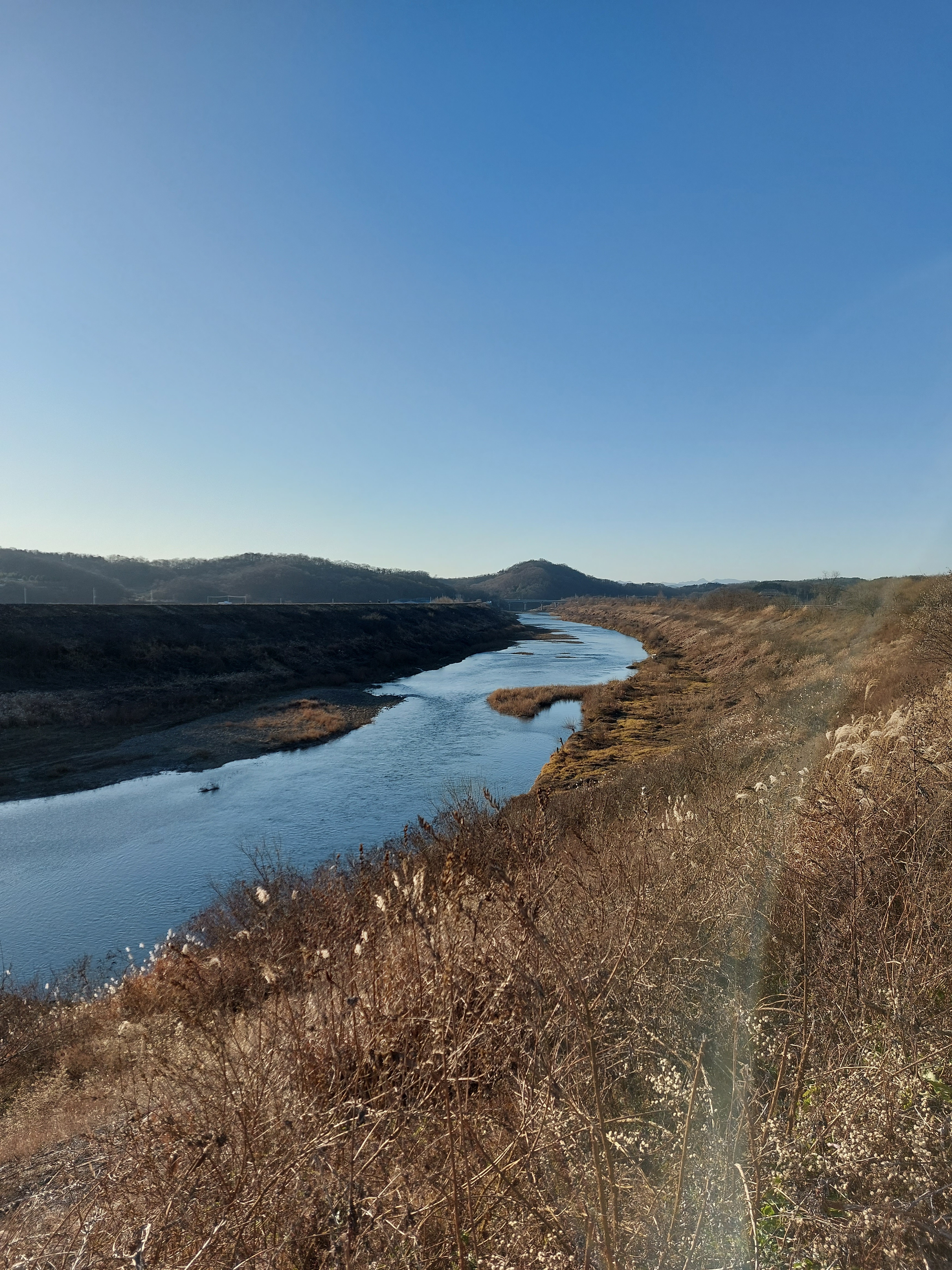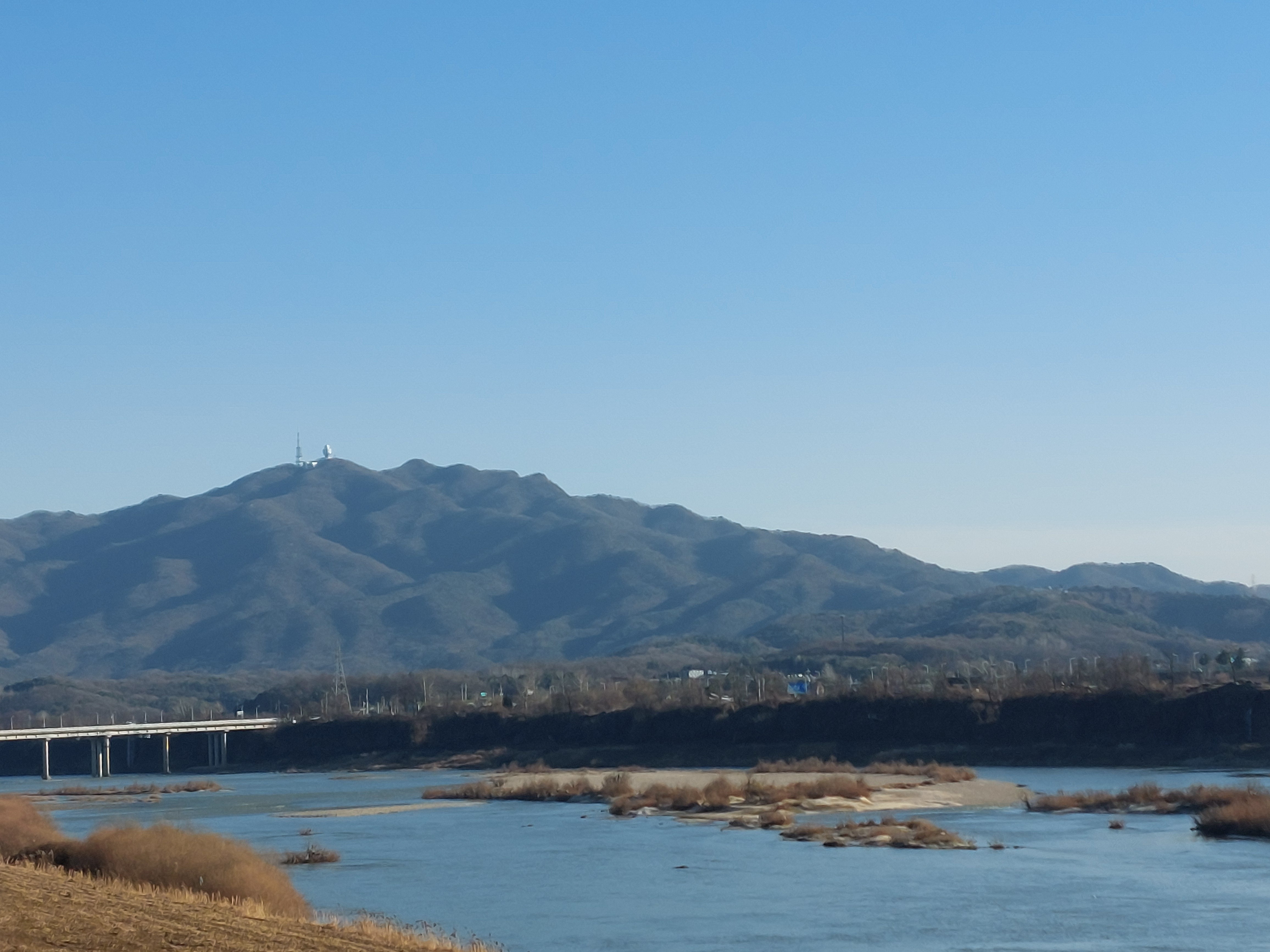 임진강 뚝을 끼고 저 멀리 감악산을 바라보며